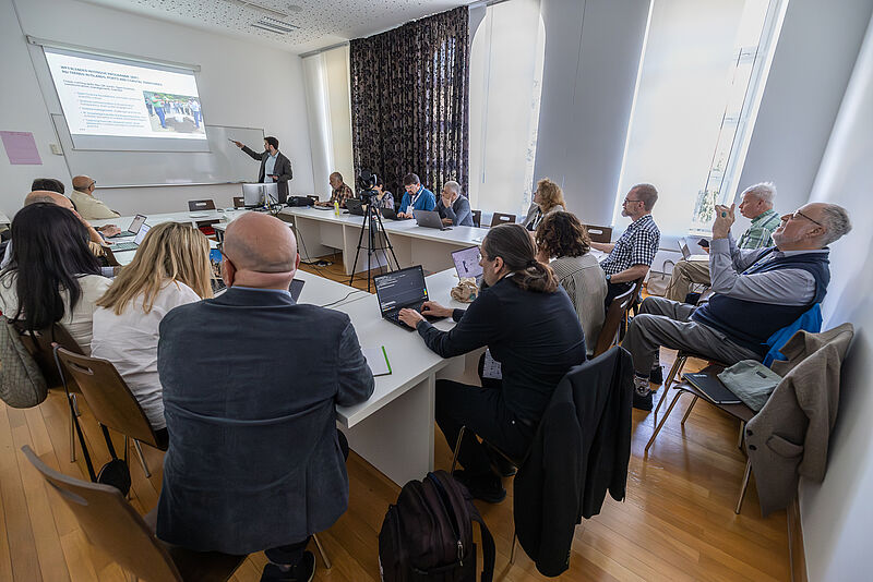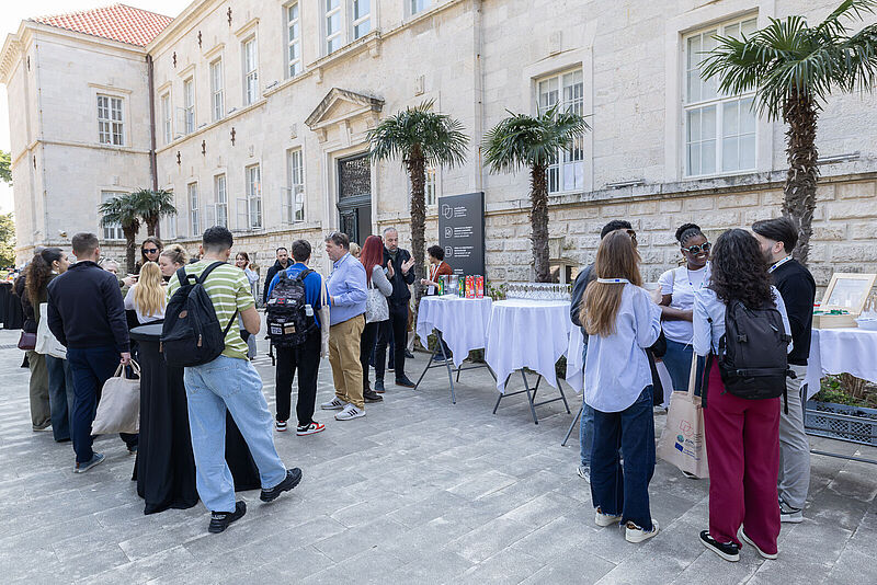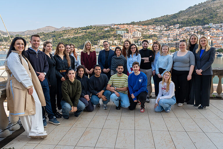 … beteiligten sich die Professor*innen und Mitarbeiterinnen in den thematischen Hubs zu Forschung, Innovation und Transformation sowie in den unterschiedlichen Boards of Rectors, Vice-Rectors und im Steering Committee. Parallel nahmen die Studierenden an Programmpunkten wie AI-Training, Neuromarketing, Virtual Campus, Instagram- & Ambassador-Programmen sowie Maritimo Recycling teil. Weitere Highlights der Woche waren Field Visits in Bistrina und Pelješac, gemeinsame Stadtführungen, ein Pub Quiz und ein Gala Dinner im Museum of Modern Art Dubrovnik.
